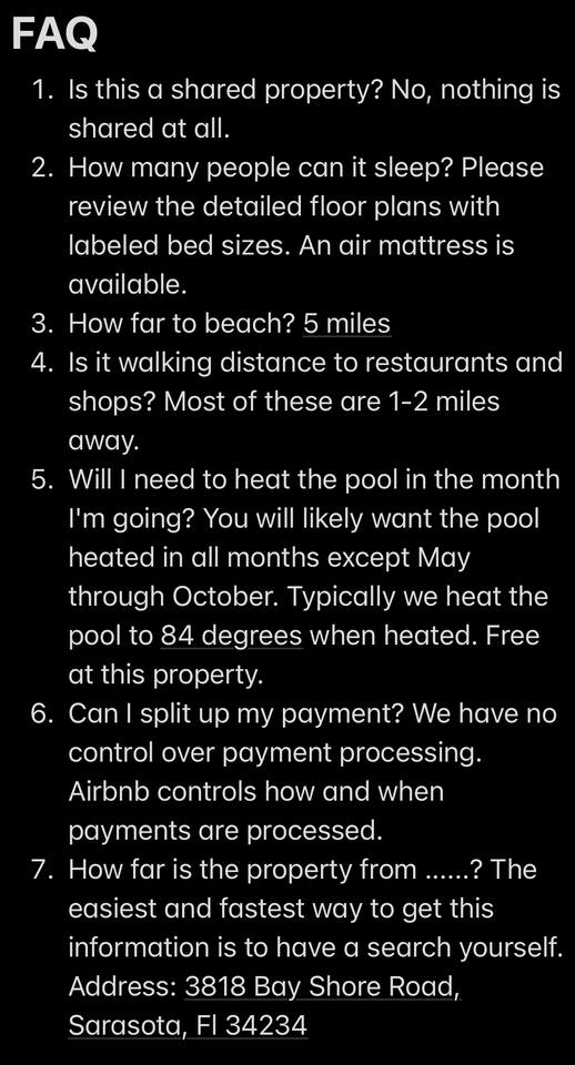 Please let us know immediately of any major breakdown or damage to items or appliances in the home. Even if it is not bothersome to you, it will give us more time to be able to get it fixed or replaced ASAP. No unapproved gatherings or parties or you will be asked to leave with no refund. Any noise complaints will result in you being asked to leave with no refund.